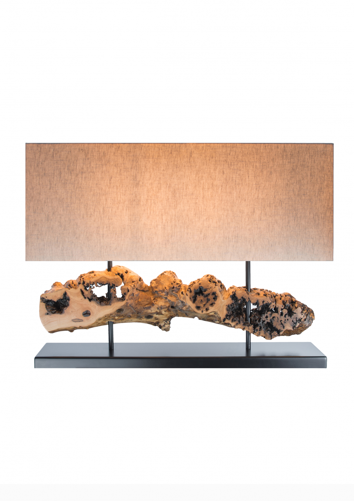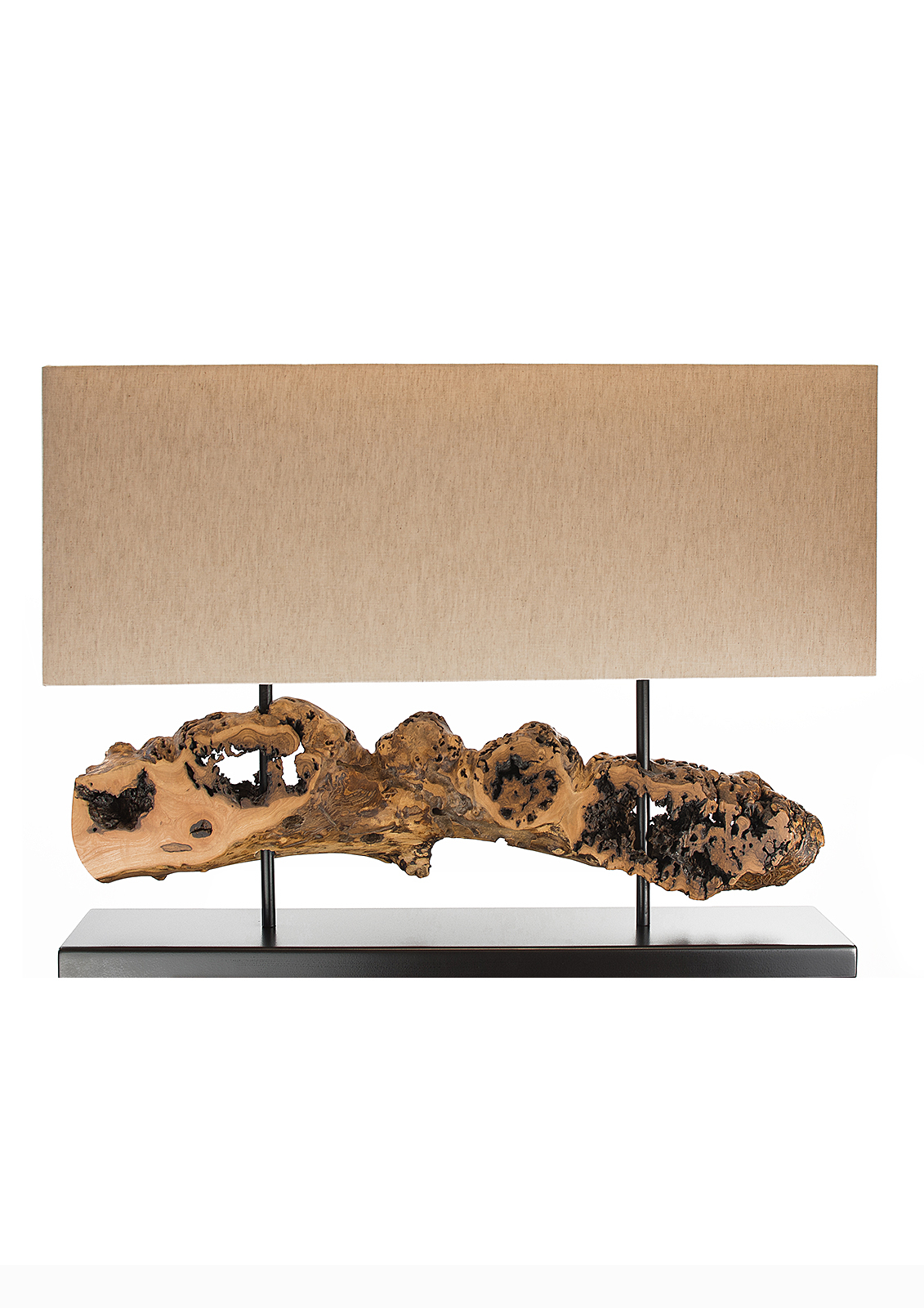 Lampa "Bess" se remarcă printr-un design inovator în care lemnul recuperat este suspendat între două tije metalice, creând un efect vizual distinctiv și elegant. Baza lămpii este realizată din metal, asigurând stabilitate și un contrast modern față de textura naturală a lemnului. Abajurul textil adaugă un element de finețe, difuzând lumina într-un mod cald și plăcut. Această combinație de materiale,lemn recuperat, metal și textil, scot in evidenta acest corp de iluminat printr-un caracter unic, fiind o alegere ideală pentru interioare ce îmbină stilul contemporan cu accente naturale.